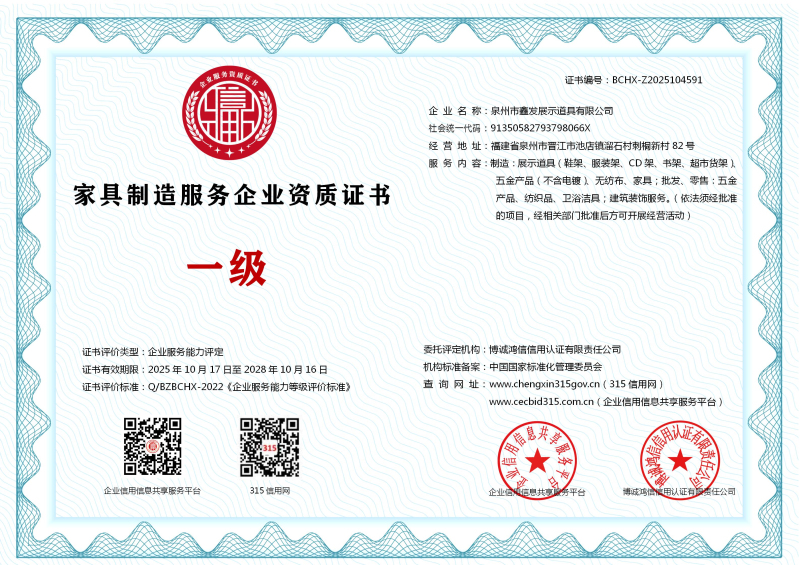 | 企业名称:泉州市鑫发展示道具有限公司 | 统一社会信用代码:91350582793798066X |