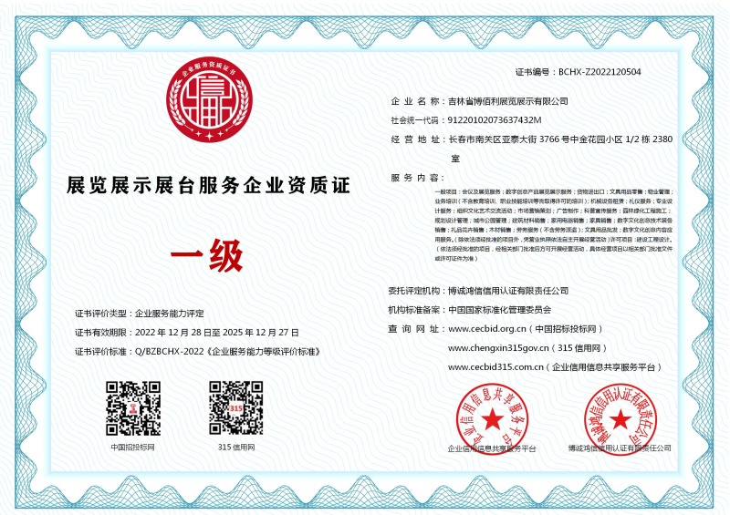 | 企业名称:吉林省博佰利展览展示有限公司 | 统一社会信用代码:91220102073637432M |