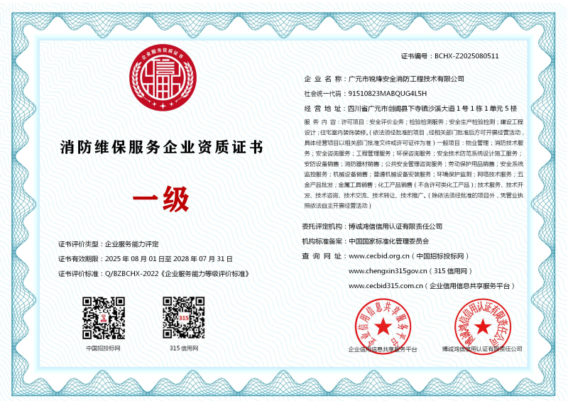 | 企业名称:广元市锐烽安全消防工程技术有限公司 | 统一社会信用代码:91510823MABQUG4L5H |