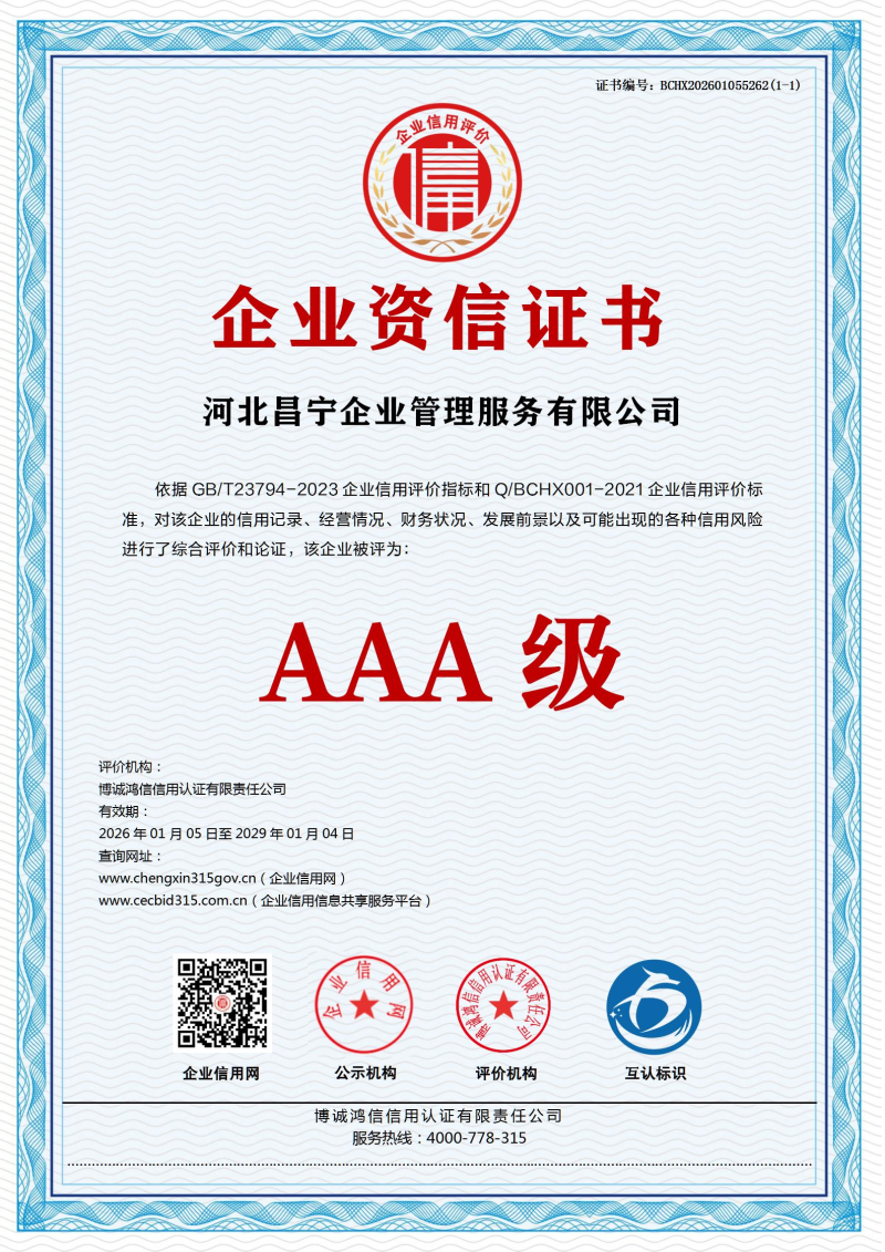 | 企业名称:河北昌宁企业管理服务有限公司 | 统一社会信用代码:91130105MA0944N209 |